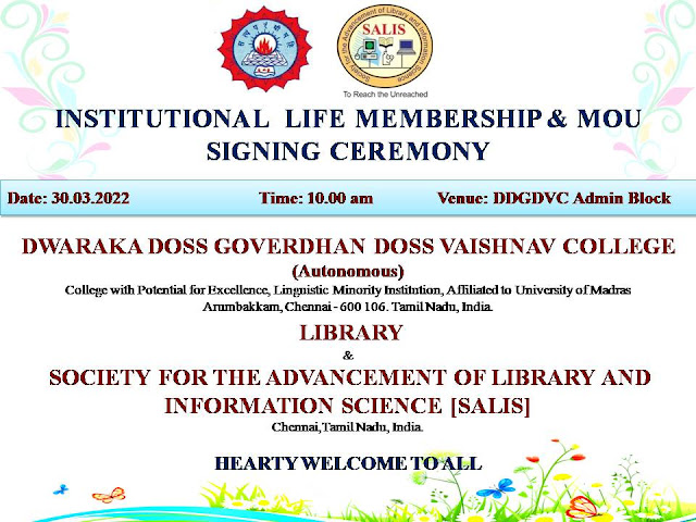 College, Chennai and Mrs.T.Sujatha Rammohan, Librarian, Shift II, DDGD Vaishnav